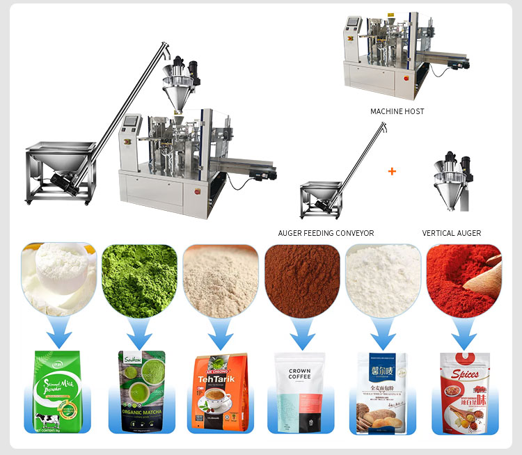 분말: 조미료 분말, 분유, 포도당 분말, 커피 분말, 화학 조미료, 농약 및 화학 비료;