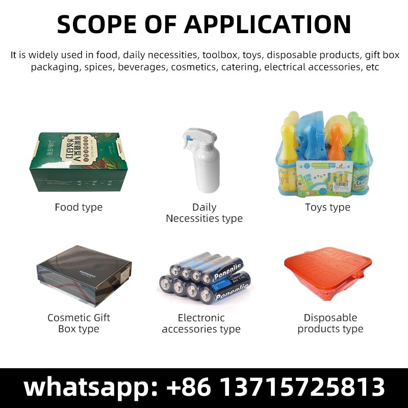 Breed inzetbaar voor onder andere voedingsmiddelen, dagelijkse gebruiksartikelen, gereedschapskisten, speelgoed, wegwerpartikelen, geschenkverpakkingen, kruiden, dranken, cosmetica, catering, elektrische accessoires, enzovoort.